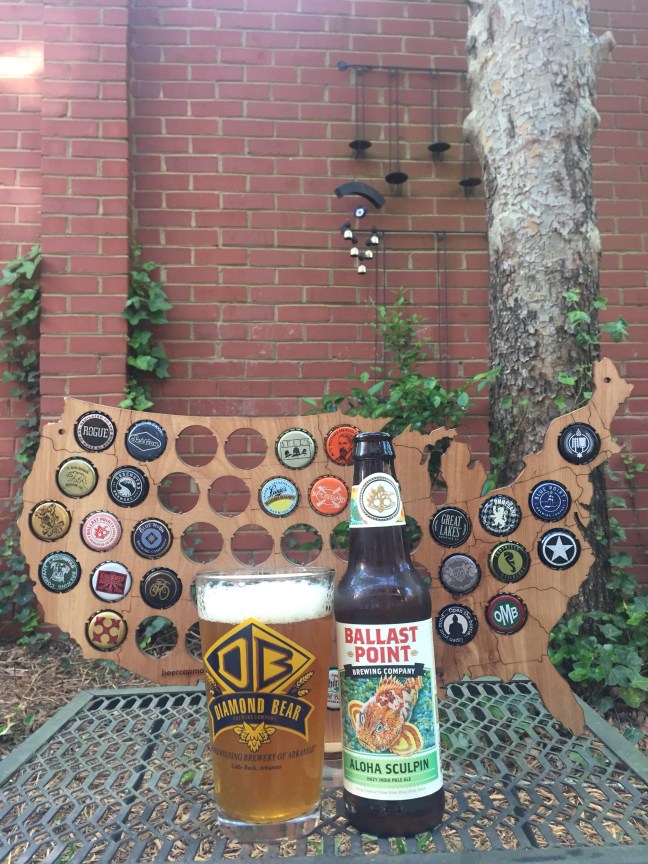 Here is yet another version of Ballast Point Brewing Sculpin IPA this is Aloha Sculpin, 7.0% ABV a hazy India Pale Ale brewed with Brux Trois Yeast which is a Northeastern IPA yeast. Aloha Sculpin pours a Hazy orange color with a rocky three finger white slowly fading head that gives off tropical aromas of melon, pineapple with a bit of mango with a nice bitters that flows into a slightly similar taste if bitter topical pineapple, melon, mango that grows in bitterness as it washes over the middle of tongue and splashes on the back of the mouth with a hop bitterness and finishes with a nice bitter tropical note and an aftertaste of topical island fruits with nice bitterness of hop flavor all with a medium/full mouthfeel. Aloha Sculpin is a tasty fruity beer overall which earns it a B. This is not a tropical fruit salad it’s close to that but mild with a nice bitterness as well as good refreshing qualities. I recommend Ballast Point Brewing Aloha Sculpin. Cheers! Please enjoy responsibly! Cheers!