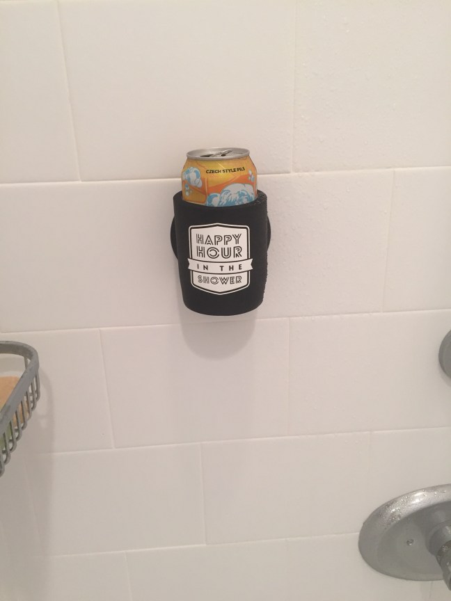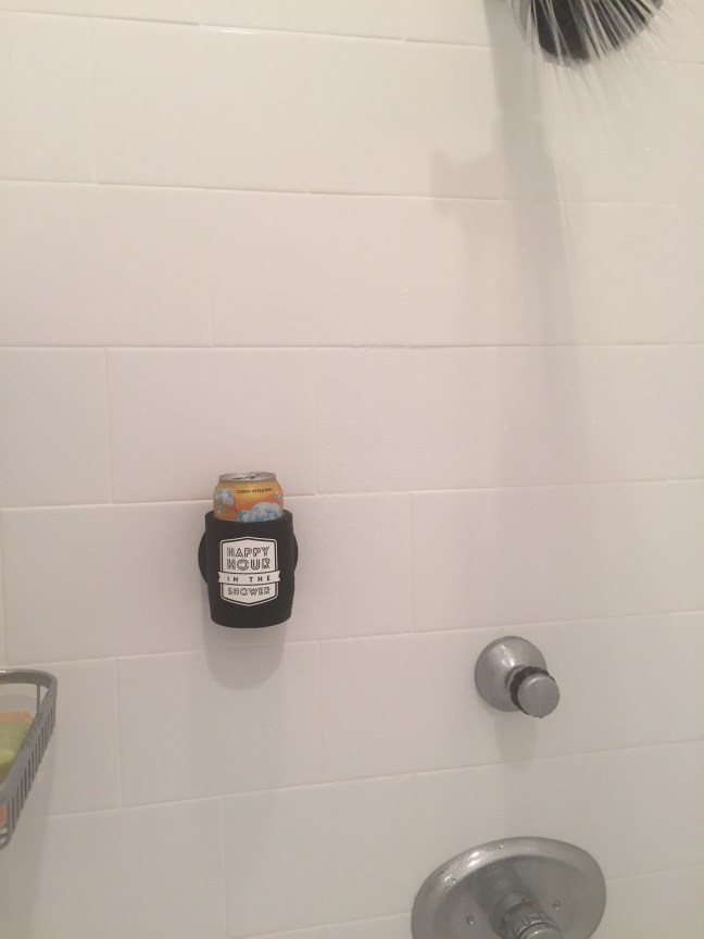 I recently received in the mail a Shakoolie Can Cooler that you can use to hold beer while showering. This product is in two parts, one is the launch pad that stick to the wall of the show with Velcro on it which the Shakoolie stick to acting as a cup holder. The Shakoolie is made of pretty thick material which held Champion Brewing Company Shower beer. I have previously posted a review of Shower Beer. Please check that out. When on the wall the Velcro hold is strong even with a full twelve ounce can of beer, but I am not sure if this cold up an open pint beer can. I will have to try that sometime.