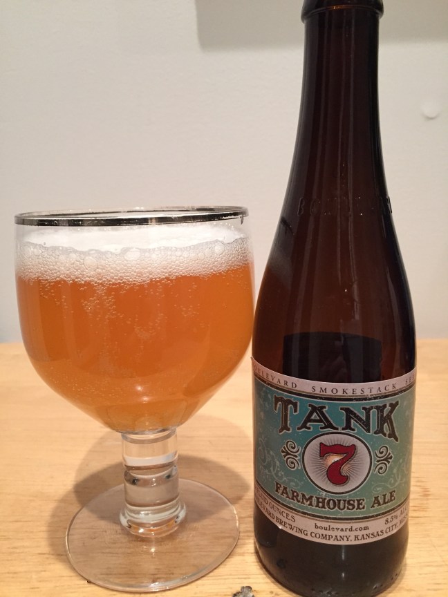 It looks like I have been reviewing a lot of Belgian-style beers recently, well that is true, I have. Well, that is because I love Belgian and Belgian-style beers very much, and I think that most concerning beers drinkers do as well. The Belgian-style beers are popular among brewers and breweries; there are some that brew the Belgian-style only. Well, this beer here no different from that; here is Boulevard Brewing Smokestack Series Tank 7 Farmhouse Ale, 8.5% ABV. Boulevard Brewing is from Kanas City, Missouri and this is part of the Smokestack Series that is named after the tall old brick smokestack at their brewery. Tank 7 pours slightly hazy light copper color with a two and a half, almost three fingers white head, that somewhat slow to dissipate but does so into a nice lacing around the glass. I found very minimal light streaming through the glass with a decent amount of carbonation bubbles. The aroma on Tank 7 is a bit fruity with some tropical fruit notes, like a little faint pineapple. There is a tiny-spiced not that is barely noticeable. Tank 7’s taste is sweet and bready from its malts used and I found there to a tropical spiced fruit similar to the fruit aroma of pineapple, but there is a little faint mango as well. Tank 7 has crispness with little lemony flavor towards the back. The mouthfeel is medium, with a nice somewhat sweet bready and spiced finish and an aftertaste of spice and bready malt that lingers long enough for enjoyment. Boulevard Brewing Smokestack Series Tank 7 Farmhouse Ale gets an A. I thought this was good Belgian-Style Farmhouse Ale, the really captured the style well with Tank 7. It had nothing wrong with, nothing overdone. Tank 7 is actually easy to drink for being 8.5% ABV and you don’t really taste that is that high in ABV. Now yes that could be a bit dangerous, but Tank 7 only comes in 12 ounces 4 packs and 750ml bottles. Yes, I would recommend this to anyone. So go out and try Boulevard Brewing Smokestack Series Tank 7 Farmhouse Ale! Cheers! Please enjoy responsibly!