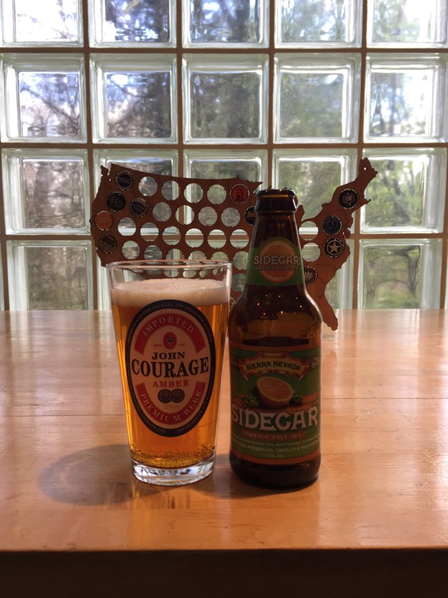 I love oranges so would I like this Sierra Nevada Sidecar Orange Pale Ale, 5.3% ABV? Well I like the original Sierra Nevada Pale Ale. So lets see! Sierra Nevada Sidecar is a newer year round offering. Sierra Nevada Sidecar pours a light top medium copper color with a two and a half finger head of white that fades at a steady pace leaving behind some minimal lacing. The aroma is orange/orange juice of course with orange peel, orange seeds. There is a faint pine yet earthy notes. Taste is much the same as it smells on the nose, there is the orange/ orange juice, orange peel and seeds with a pale ale earth and slight pine on the back of the mouth. But this Sidecar is more orange than anything. The mouth feel is light to slightly medium and finishes with a faint bitter orange flavor that leaves the same juicy after taste that lingers until you take another sip. Overall Sierra Nevada Sidecar orange Pale Ale is great, it get an A. It has a big orange flavor with a little bit of pale ale flavors towards the end that make it a great drinking beer. Sierra Nevada Sidecar is something that you’d want again and again. The flavor does not overpowering your palate. It has the right amount of balance to it. I do like Sierra Nevada Sidecar Orange Pale Ale, and I recommend it! Cheers! Please enjoy responsibly!