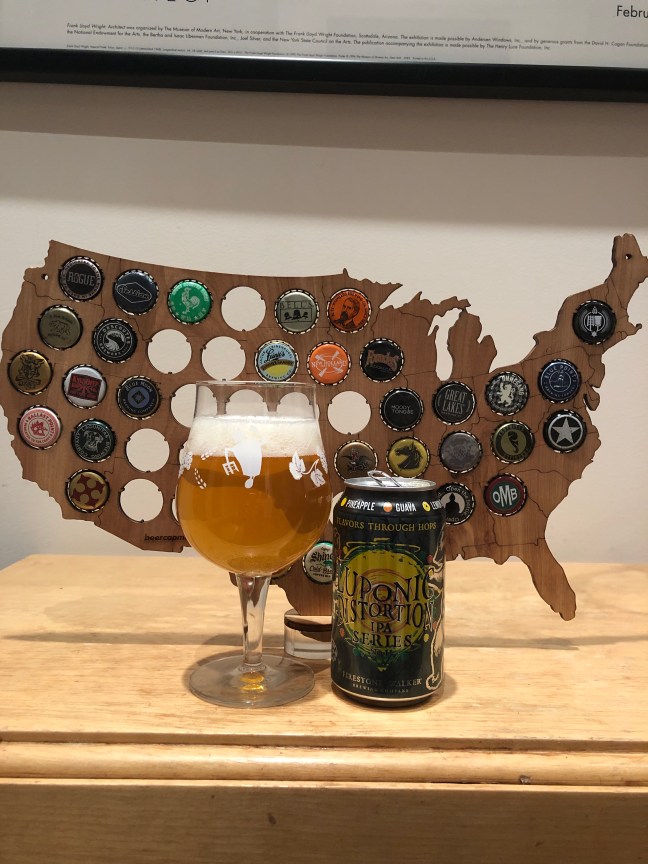 This Firestone Walker Brewing Co. Luponic Distortion IPA Series No. 11, 5.9% ABV is part of Firestone Walker’s IPA Series called Luponic Distortion and is the 11 one of the series coming out of Paso Robles, California which I purchased from my local Total Wine. According to the breweries brewmasters, this IPA showcases an emergent new hop from the Pacific Northwest which compliments the Australian hops as well as the German hops. Luponic Distortion No. 11 pours yellow light gold color with a white two finger head giving off tropical fruit aromas with hints of a bitterness that lead into a tropical pineapple note with hints of guava, bits of lemon and lemon drop that are juicy with a bitter hop notes coming in on the back fo the tongue with a nice tropical finish and a bitter tropical fruit aftertaste, with a lighter mouthfeel. This is the kind of tropical fruit IPA that I like and Firestone Walker Brewing Co. Luponic Distortion IPA Series No. 11 is an A+, something that you must try and one that I will most certainly o back for. All the tropical fruits meld well with one another creating a nice tropical fruit sensation in your mouth. Cheers! Please enjoy responsibly!