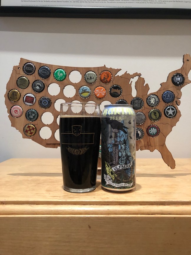 I like the Burial Beer Co, beers so while I was shopping at Pop the Top Bottle Shop I picked up Burial Beer Co. Ulfberht Baltic Porter with Juniper, 7.8%, brewed with German and British malts, then fermented with Juniper, and traditionally lagers. Ulfberht Baltic Porter pours a jet black oil color with a one and a quarter finger beige head that does leave behind some spotty lacing with aromas of Chocolate sweetness and roasted malts with a faint berry note. The taste is not to far off form the nose of Ulfberht Baltic Porter, there is the roasted sweet chocolate flavor with a faint minty beery on the back of the tongue that comes to a nice sweet roasted finish with an chocolate juniper berry aftertaste with a medium/full. This hits the make on how I feel about Burial Beers, Burial Beer Co. Ulfberht Baltic Porter with Juniper is definitely a A+. I found it to be just the right mouthfeel and well brewed and balanced Baltic Porter, one that highly recommend and one will be back too. Cheers! Please enjoy responsibly!