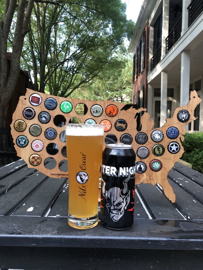 Arrogant Consortia (Stone Brewing) Enter Night Pilsner, 5.7 ABV is a collaboration between Arrogant Consortia and the heavy metal rock bands Metallica. That is not the usual type of beer collaboration you normal find but I think that it’s interesting and it may boost beer sale. Enter Night Pilsner pours a darker golden color with a two and a half finger white head with good retention and nice lacing is left behind with a little hoppy clean-ish bitter aroma on the nose. Taste is like a nice German Pilsner up front but strong and with a quick crisp note in on the middle of the tongue and a slight bitter hoppy note on the back that grows into the finish of a hoppy cracker and a slight linger of a bitter note in the aftertaste with a lighter mouthfeel. This is what you’d expect Arrogant Consortia (Stone Brewing) to do with a Pilsner beer it has their signature hoppy notes in there but they do it without ruining the fact that it’s a Pilsner beer. I give Arrogant Consortia (Stone Brewing) Enter Night Pilsner a B- it starts out nice and slowly goes down from there but not too far, and yes this interesting beer is worth checking out and trying. Cheers! Please enjoy responsibly!