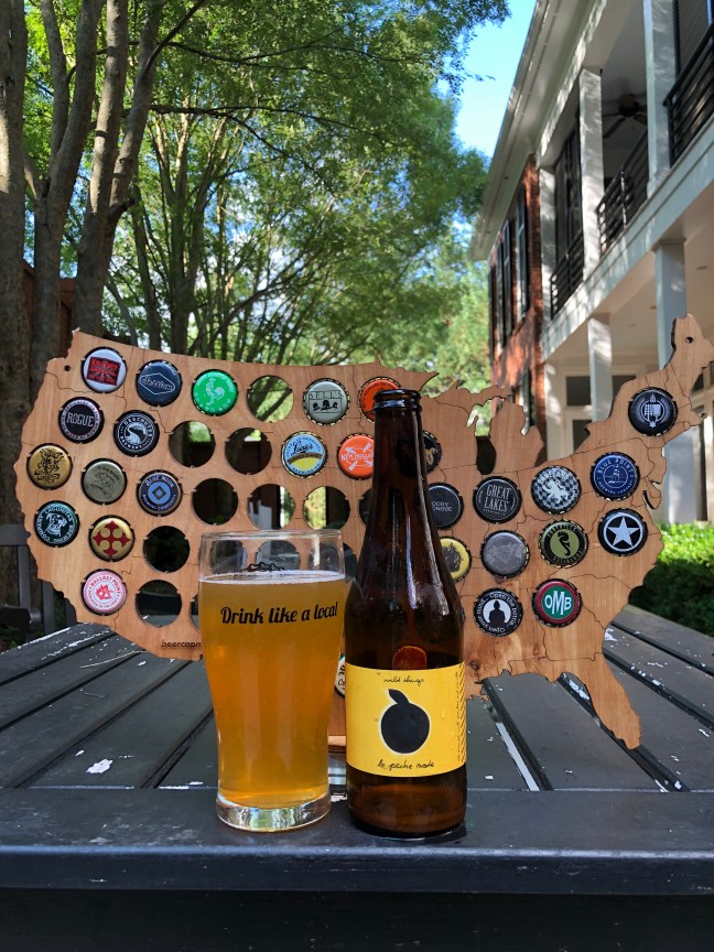 D9 Brewing Company Wild Things Le Peche Mode, 7.5% ABV is purchased from Total Wine is a sour beer, brewed with peaches and vanilla, and is part of D9’s (Cornelius, North Carolina) Wild Things series. Le Peche Mode pours a slightly hazy yellow color with a one and a half finger of quickly fleeting white head that leaves no traces of itself behind. The aroma is sweet, bubble gum like sweetness, fruity with nice peach notes with a tartness wafting into the nose with hints of a faint yeast note. Taste is somewhat similar to its own aroma with a nice fruity peach sweetness at first then fades into more of slight vanilla notes with tart sour fruited notes on the middle and the back of the mouth, that finishes with a light sweet fruity tartness and a very faint peach vanilla tart aftertaste and a light mouthfeel. D9 Brewing Company Wild Things Le Peche Mode has a little flavor that reminds me of a Gose style but a just a very faint flavor. Le Peche Mode is a C+. The vanilla is light as the peach is more dominant and I like peaches a lot but I think that the vanilla flavor needs to be taken up a notch for this to be any better, it’s just slightly above average and this is not something you should stay away from, it’s nice and refreshing. Cheers! Please enjoy responsibly!