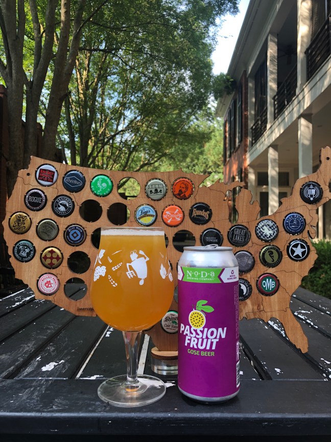 NoDa Brewing Company Passion Fruit Gose Beer, 4.0% ABV purchased from Pop The Top Craft Beer Shop is a beer in the Gose style, an old German style that was once on the brink of being nonexistent, but now Gose style can be easily found in thanks to the many craft brewers who have brought it back into popularity. Passion Fruit Gose brewed right here locally in Charlotte, North Carolina pours a light yellow color with a one finger white head that fades a quick pace giving off fruit aromas of citrus fruits with a nice sour note. Taste is tropical with citrus fruit with a faint/light sweetness that turns tart with hints of sour notes with a few briny notes coming in on the back, that finishes tart briny with tropical citrus flavor with a briny citrus aftertaste that is mildly tart with a somewhat light mouthfeel. NoDa Brewing Company Passion Fruit Gose Beer is good but I think there is better Gose beer out there, not to say that this one is bad it’s a B+ beer. The passion fruit adds a bit more tropical flavors to a beer that I already consider tropical or like a tart margarita. NoDa Brewing Company Passion Fruit Gose Beer does, however, have more of a little tart flavor than some Gose beers out there but that doesn’t really keep it from a good status. Yeah, I think that this is one beer that many can be consumed and you should try it! Cheers! Please enjoy responsibly!