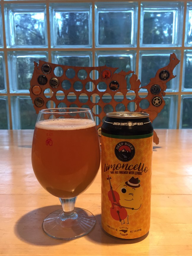 Creativity is key to brewing and producing craft beer. Brewers get creative with ingredients, can and/or bottle type or even with the name and artwork on the label. One example is Deep River Brewing Co. Limoncello Tart Ale Brewed with Lemons, 5.4% that is produced in Clayton, Johnston County, North Carolina. Limoncello is sour blonde ale that is brewed with Sarachi Ace hops, a boatload of lemon, not sure how to measure a boatload, and fermented with a proprietary yeast strain that was developed with technology at NC State University. Limoncello pours a darker yellow color that has a bit of a brown murky hue to it with almost no head. The aroma is quite pleasing with fresh tart lemons and lemon peels with the lightest hint of a sour note. The flavor is at first slightly tart with lemon but is refreshing at the same time. Toward the middle of the mouth, Limoncello becomes a bit more tart and the lemon come through more, and on the back, the sourness shines a bit brighter without overpowering the tart lemony flavors there. The mouthfeel is light with a bit of thickness as you swallow. Limoncello finish tart, slightly sour with a nice refreshing quality. After taste lingers with tart lemon/lemon peels but doesn’t linger too much, and doesn’t pucker up the taste buds in the after taste. This beer is very good, it deserves an A. I found that none of the flavors clashed or overpowered one another, they all got along well and formed a wonderfully refreshing beer. I not the biggest fan of fruit beer, I like them enough and some fruits are not what I would say are good to brew beer with. But lemon in beer, now that is a good choice. I think lemon can enhance a beer or add another layer of flavor without making it into something not enjoyable. So you there should go and try Deep River Brewing Co. Limoncello Tart Ale Brewed with Lemons, I recommend you too. Cheers! Please Enjoy Responsibly!