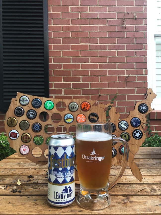 Lenny Boy Brewing Co. Festibier German-Style Lager, 6.3% brewing here in Charlotte, NC and purchased from Pop The Top. This is a traditional German-Style Lager that pours Gold yellow color with a two-finger clean white head that steadily fades away giving semi-sweet honey biscuit malts with a very faint light hop note. The taste is on the bland side with honey-sweet notes that coexist with a faint hop character and a biscuit notes that finishes with a very faint hop twinge and a faint sweetness that has a short aftertaste that is minimally sweet and hoppy with a slight metallic note with a light mouthfeel. Lenny Boy Brewing Co. Festibier German-Style Lager is slightly on the boring side getting a low C-. I’ve had beers in this style where the flavor popped this Festbier has an overall bland flavor profile and yet I did finish a pint of it and wasn’t totally grossed out by it but I would not by this again, but it’s not the worst choice. Please enjoy responsibly! Cheers!