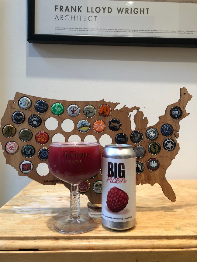 I have not really seen much of Heist Brewery beer in stores until I saw Heist Brewery Big Pick’n Berliner Weiss with Raspberry, 6.1% purchased from Pop The Top. Big Pick’n pour very thick raspberry red with a two finger pink head that steadily fades in to a little white cloud. There is a tart raspberry aroma with a bit of some sour notes and a very faint wheat note. Fruity tart raspberry flavor burst on your tastebuds with sone semi faint juicy sour notes that have a nice tart raspberry finish and fade in to aftertaste with a medium mouthfeel. Heist Brewery Big Pick’n Berliner Weiss with Raspberry is rather good and getting a B+. It isn’t overly tart but just enough for most tastebuds. Sone tend to over do it with the tart flavors and this hit the sweet spot. I recommend Heist Brewery Big Pick’n Berliner Weiss with Raspberry. I will have this again. Please enjoy responsibly! Cheers!