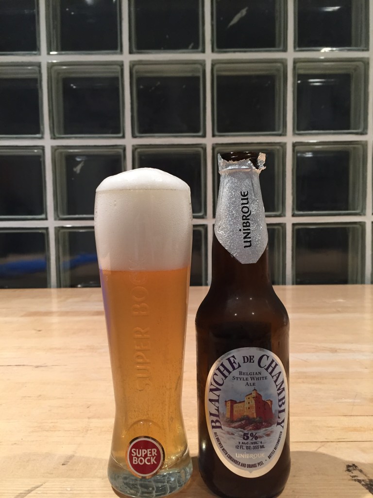 It’s been four of The Best of the Mixed Six-Pack, with Unibroue Blanche De Chambly, 5.0% ABV. This is a Belgian style white ale from Canada brewed with Coriander and Orange Peel then its bottle refermented, which means a second fermentation takes place within the bottle. Unibroue is one of my favorite brewers and brews some of the most amazing beers. Blanche De Chambly pours a hazy sort of bight yellow color with a bright three finger white head that slow to fade but does transition into some nice lacing. The aroma is quite nice with some spiced orange peel with a hint of a yeast character. Blanche De Chambly has a nice refreshing taste to it with nice yeasted orange peel with hints of the coriander spice. The taste is one the heavier side but really solid. The mouthfeel is one heavier side of the medium spectrum and has a nice refreshing finish of slight orange and faint spiced notes, the same can be said of the aftertaste but the is a slightly heavy feeling in the said aftertaste. This is definitely an A beer for sure. It’s a bit heavy but a lot of good Belgian style white ales are, so have many is not recommend. It this better than Westbrook White Thai? Well, Westbrook White Thai is not as heavy as Blanche De Chambly and White Thai has more of a broader flavor to it with a slight tropical feel to it. But this is a tough question. They are both White Ales, but different takes on each. One is traditional and one isn’t. But to find out which comes out on top, you’ll have to stay tuned here to find out. Cheers! Please enjoy responsibly!