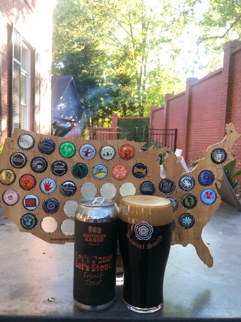 Southern Range Brewing Co. Let’s Dance Let’s Stout French Toast, 7.0% ABV brewed in Monroe, North Carolina purchased from The Butcher’s Market. Let’s Dance Let’s Stout French Toast pours a deep thick black color with a creamy three finger beige khaki head, with a roasted cinnamon sweet coffee aroma wafting off into you nose. Taste is similar to the aroma with nice maple syrup, some cinnamon, with roasted coffee notes in the middle of the mouth with a full thick mouthfeel that has a roasted bitter finish with a bit of faint sweetness that then give a nice roasted maple coffee aftertaste. This beer has a similar flavor profile to French Toast but the bitter notes on its finish give Southern Range Brewing Co. Let’s Dance Let’s Stout French Toast a C+, everything else is good but I didn’t like that bitterness on the end. I don’t mind a bitterness but this bitterness was not pleasant and did really belong with the rest of this beer flavors. But it was not so bad that it would keep me from having Southern Range Brewing Co. Let’s Dance Let’s Stout French Toast again. Please stay safe and enjoy responsibly! Cheers!