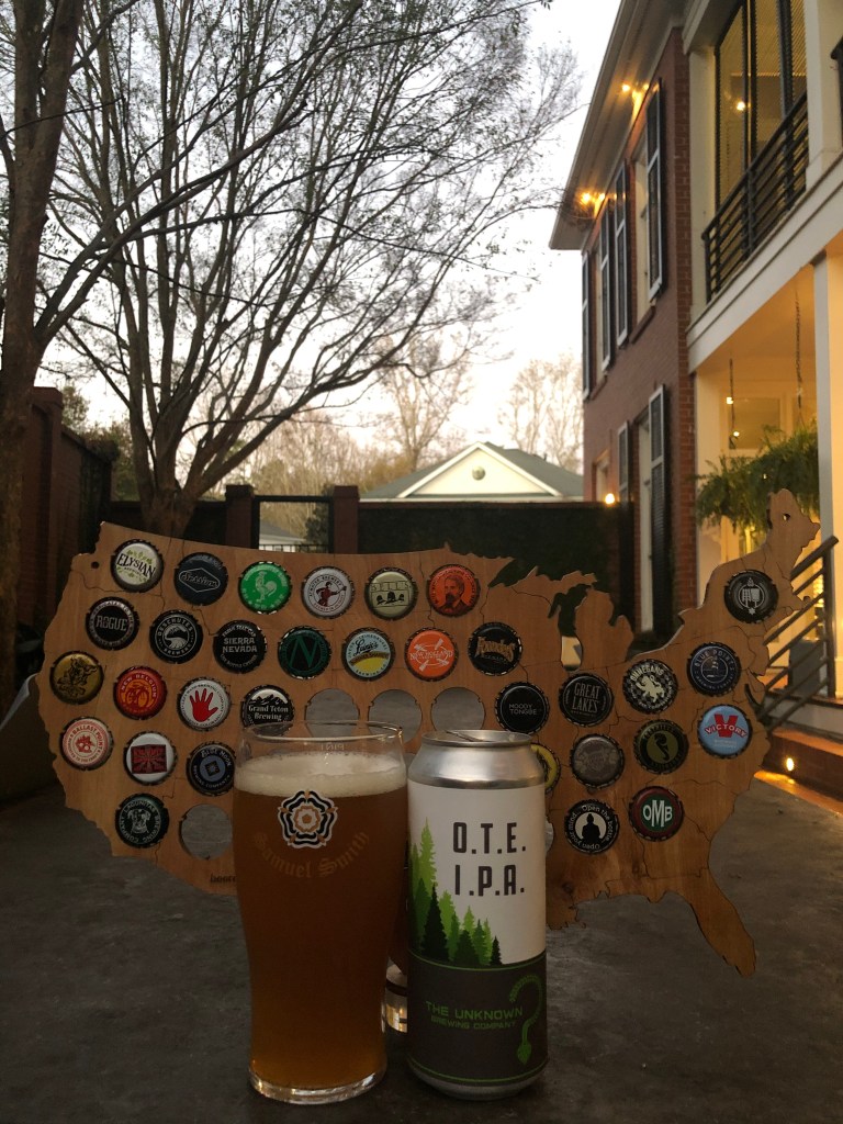 The Unknown Brewing O.T.E. I.P.A. (Over The Edge India Pale Ale), 6.4% is a west-coast style IPA, thats brewed with five grains and west coast hops. Over The Edge, IPA is brewed here locally in Charlotte, North Carolina. This IPA pours a deeper yellow-orange color with a two and a half finger white head. The head is steady to fade away. Over The Edge, IPA has a citrusy hoppy aroma with a light sweetness. Taste is citrusy with light sweetness and happiness with a faint pine note come on the back of the mouth that then comes to a nice bitter fruity finish with a malted note. The mouthfeel is medium, and the aftertaste is just the finish that lingers. Overall The Unknown Brewing O.T.E. I.P.A. (Over The Edge India Pale Ale) solid IPA without being too wild with ingredients and flavors. Over The Edge is how you brew a traditional west-coast style IPA should be and I give it an A+. It is solidly brewed and tastes good. So I suggest you try The Unknown Brewing O.T.E. I.P.A. (Over The Edge India Pale Ale). Please stay safe and enjoy responsibly. Cheers!