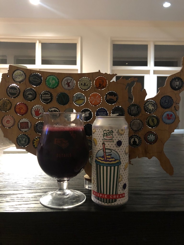 My local craft beer shop Pop the Top Bottle Shop had an event where 450 North Brewing came down from Columbus, Indiana, with a few of their beers. So they had some to sell, and that’s how I came across 450 North Brewing Co Slushy XXL Crispie Cream, 5.3% ABV. This beer has blueberry, glazed donuts, lemon, and Bavarian cream. It is also a part of their XXL Slushy series. This beer pours a thick dark purple color with a thin one-finger white head. The head fades quickly. The aroma is sweet. I found blueberry aromas, with a hint of tartness from the lemon. The taste is much like a glazed jelly donut. There is sweet blueberry with creamy notes of the Bavarian cream. it has a tart lemon finish with a full mouthfeel. It coats your entire tongue with good flavors. There is a lemon, creamy aftertaste that lingers just a bit. 450 North Brewing Co Slushy XXL Crispie Cream is a neat beer. This is one that is an A+. it does taste like a donut. All the ingredients flow into a great beer. If you come across 450 North Brewing Co Slushy XXL Crispie Cream, buy it, and try it. Please be kind, be safe, and enjoy responsibly! Cheers!