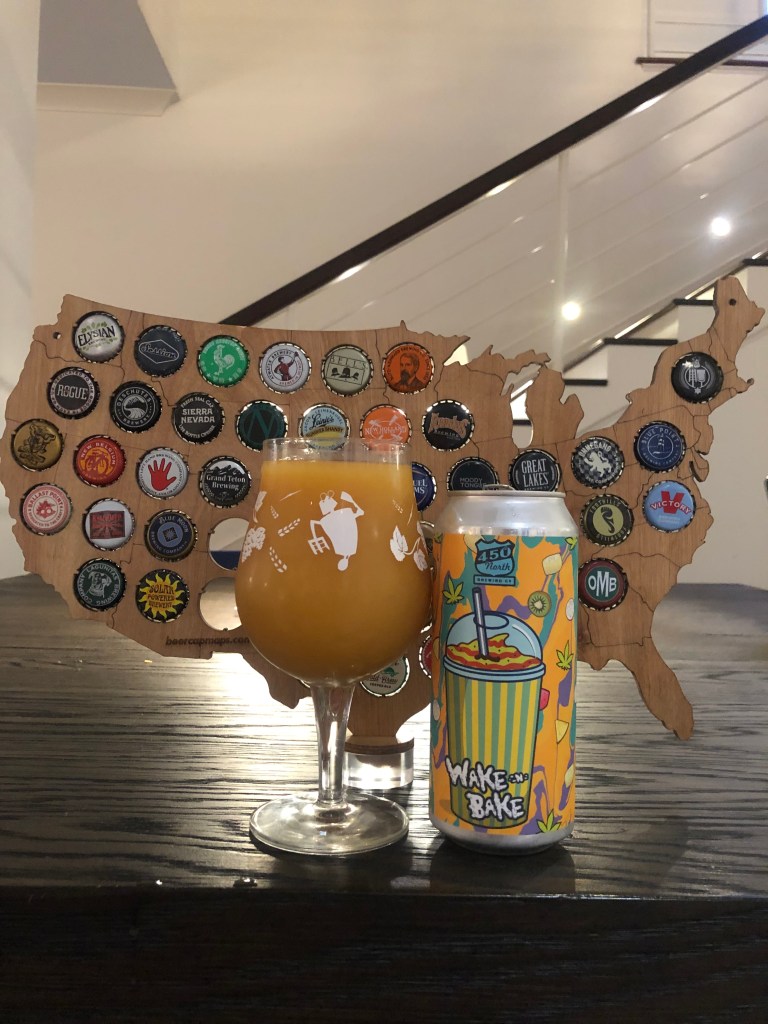 Happy New Year to everyone. I hope you had a good one. This beer, 450 North Brewing Company Slushy XXXL Wake -n- Bake, 5.3%, is the first beer review of the new year. It is made with pineapple, peach, dragonfruit, banana, kiwi, and watermelon. It pours a thick, headless, yellow color. The aroma of this beer is sweet, juicy, tropical, fruity. I got pineapple, dragonfruit, and light kiwi. The taste is sweet and fruity. There is tropical pineapple, light peach flavors, kiwi, and dragonfruit. The mouthfeel is thick and full. It then finishes with a slight tropical tart fruity flavor. The aftertaste is big on the pineapple. I think this slushy fruity beer style is a novelty thing. I mean, I don’t see myself going for more than one of them. It is very fruity and sweet. I give this 450 North Brewing Company Slush a B-. It’s thick and sweet with a load of fruit by the end, it overpowers your tastebuds. But I would go as far and say it terrible. Please be kind, stay safe and enjoy responsibly! Cheers!