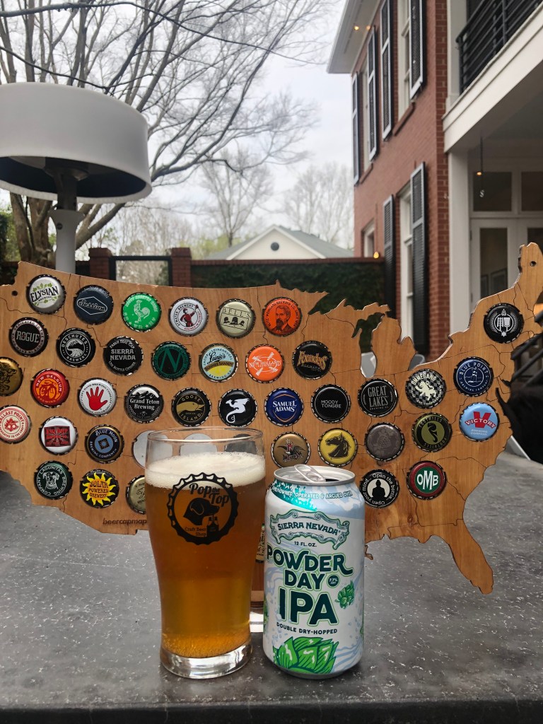 I saw this Sierra Nevada Brewing Co. beer yesterday at the grocery store, and the white a green packaging stood out. This beer is Powder Day IPA, 7.7%, a double-dry hopped seasonal (winter seasonal). It has Munich, Two-row pale, and Wheat malts. This beer also has Amarillo, Chinook, Comet, Citra, Herkules, Idaho 7, Mosaic, and Polaris hops. Lastly, they use Lupulin powder. It is the yellow gland of a hop plant in which the acids and the essential oil can be found. This IPA pours a yellow/golden color with a bright white two-finger semi-steady fading head. The aroma is piney, slightly citrusy, and bitter. The flavor is piney, hoppy/bitter with light citrus. This beer does taste like a winter IPA. The mouthfeel is light. Then this IPA comes to a bitter piney finish. The aftertaste is a bit citrusy, with a little bitter pine. This beer is a good IPA, and it doesn’t taste or drink like it is 7.7% ABV. Sierra Nevada Brewing Co. Powder Day IPA is an A. But I think that after the third, the flavor is too much. So I don’t think that’s a bad thing. I would go back to this beer again and again, and I think you should too. Please be kind, stay safe and enjoy responsibly! Cheers!