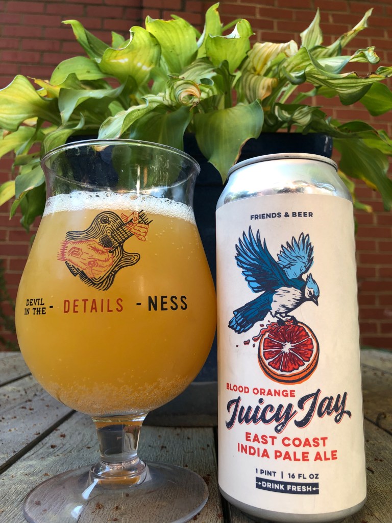 Coming from Legion Brewing Co. in Charlotte, North Carolina. Blood Orange Juicy Jay East Coast India Pale Ale. This Juicy Jay is 6.3% ABV. This Juicy Jay is another variation of Legion’s Juicy Jay. This IPA pours a light yellow color with a decent two-finger white head. It fades steadily and leaves behind little lacing. The aroma is fruity (pineapple, blood orange) and bitter. The flavor is bitter, hoppy, light blood orange, and some pineapple. It is hoppy as well. Then this IPA finishes with bitter fruits. Then you get an aftertaste of bitter, hoppy light fruit flavor that doesn’t linger. This IPA is not terrible. But the blood orange is a little light. I would’ve liked a little more blood-orange flavor. I would say this beer is a B-. The original Juicy Jay is a little better. But I would,d say that you shouldn’t try it. It is worth a try. Overall I would say this Variety of Juicy Jay is different, and that’s not bad. Please be kind, stay safe, and remember to enjoy responsibly! Cheers!