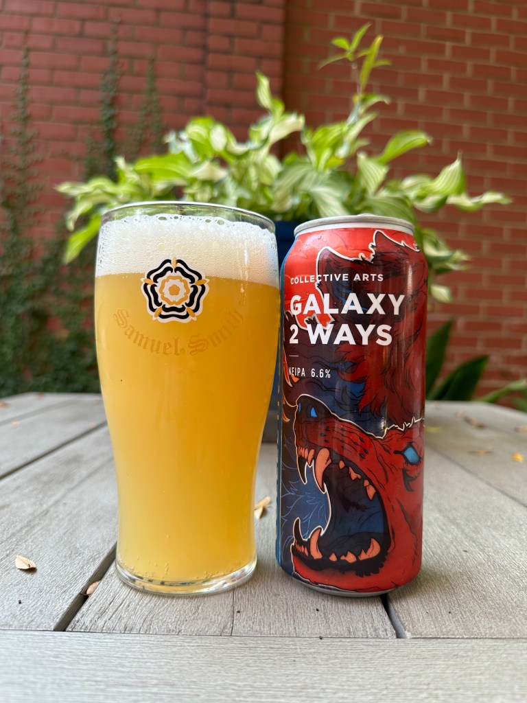 This beer is Galaxy 2 Ways from Collective Arts Brewing. This beer is named because of the Galaxy and Galaxy Spectrum hops in this New England India pale ale (NEIPA). This IPA is 6.6% ABV. This bee is from Hamilton, Ontario, Canada. This beer pours a bright yellow with a three-finger pillowy/fluffy white head. The head doesn’t seem to fade at all. The aroma is juicy, fruity, pineapple, citrusy, bitter, and bright. The flavor is juicy pineapple, citrusy, spruce, bitter flavor, and slightly earthy. The mouthfeel is medium. Then this IPA comes to a nice bitter, tropical, citrusy finish. Then you get an aftertaste of bitter citrus, pineapple, and light spruce. This beer is so delicious, and it gets an A+. This beer is the third I’ve had from Collective Arts, and I like this brewery. I recommend this beer. It has all the good fruity bitterness you want from this NEIPA. It’s not overly bitter. It has just the right amount. This Galaxy 2 Way is balanced NEIPA. Please stay safe, be kind to everyone, and remember to enjoy responsibly! Cheers!