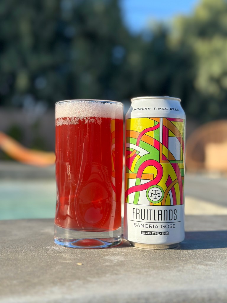 This beer is Fruitlands Sangria Gose from Modern Time Beer in San Deigo, California. This is a sour Gose-style beer that is 4.8% AB. I purchased this from The Citizens Public Market in Culver City. This Gose has Pilsner, malted wheat, and flaked wheat malts. This beer pours a magenta color with a one-finger slightly pink head. This Gose beer has a slightly sour, salty, and sweet aroma. The aroma is tropical fruit, like guava, melon, and passion fruit. The flavor is tart, sweet and sour. There is guava, melon, and passionfruit. This beer has a mild tartness with minimal sour notes. This beer is light on in the mouth. Then you get a tart but tropical finish. The aftertaste is of tart tropical fruits. I found this beer not so great at first. But after a few sips, this Gose started to get better. I would give this beer a C-. I think Westbrook Brewing Gose, in my opinion, is the best version. With the addition of fruit makes the not an even comparison but close. This Fruitlands Gose is not the worst, but I would rush back to try this. Please stay safe, be kind to each other, and remember to enjoy responsibly! Cheers!
