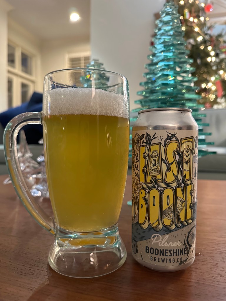 This Pilsner from Booneshine Brewing Co. has Pilsen Malts and Magnum Haltertauer hops brewed in Boone, North Carolina. This Pilsner is 5% ABV. I have been looking for and trying more Pilsners lately because the beer I see on store shelves is some sort of IPA. I still like IPA. But I’d like to keep this blog diverse. This Pilsner pours bright yellow with a two-finger white head that fades slowly. The aroma is crisp, lightly peppery, and clean. The flavor is crisp, peppery, clean, light-bodied, and has a very faint lemon note. The mouthfeel is light. Then, it has a crisp and clean finish and a refreshingly light aftertaste. This is a great beer that I give an A+. East Boone Pilsner is a beer that I recommend and drink over and over. The flavor is such that you could have an entire four-pack. Booneshine Brewing Co. is becoming one of my top breweries. They brew delicious beer that you should be drinking. Please stay safe, be kind to each other, and remember to enjoy responsibly! Cheers!