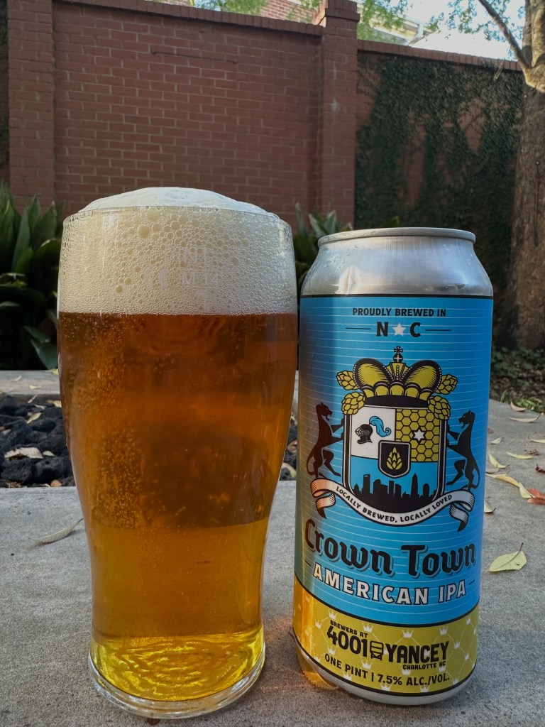 I like IPAs, but the market is overflowing with them. A lot of IPA choices out there, and this one is Brewers at 4001 Yance Crown Town American IPA. This American IPA is 7.5% ABV. This is a local brewery with different breweries. These breweries are Sixpoint, Victory, Southern Tier, and Bold Rock Cider. Crown Town is a nickname of Charlotte, NC. We’re known as the Queen City after Queen Charlotte. This IPA pours a copper color with a two-finger white head that leaves beautiful lacing behind. The aroma of this IPA is dank, bitter, and piney. The flavor is dank with pine notes. There is light onion and bitters with grapefruit flavors. This has a medium body feel to the mouth. This American IPA finishes with a pine bitterness. The aftertaste is a lighter pine flavor with deep bitter notes. This is what I remember IPAs to be back twenty-five years ago, before they exploded in popularity. This is a solid IPA that is an A-. The only downside to this beer is that the bitter flavor starts to become too much after the second. But I would still recommend it! Please stay safe, be kind to each other, and remember to enjoy responsibly! Cheers!
