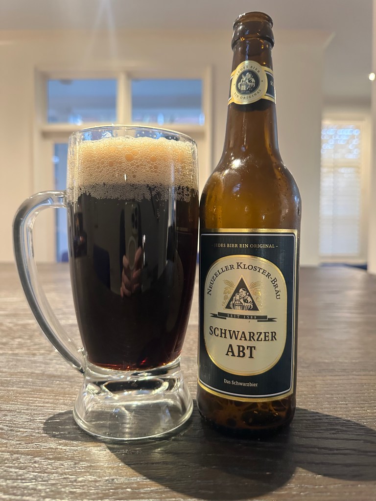 Over the holidays, one of my German exchange students and his wife visited. He brought a few beers, Kloster Bräu Schwarzer ABT. This 3.9% ABV beer is a Schwarzbier, brewed in Nueller, Brandenburg, Germany. It has been a while since I have had and reviewed a Schwarzbier. This beer pours black, forming a two-finger beige head with brown edges. The aroma is light, smoky, malty, and coffee. The flavor starts with a smoky flavor, then transitions into a malted flavor with a bit of sweet coffee notes. This beer reminds me of a cola. Overall, this beer has a light-bodied feel. The finish is malty with a light smoky aftertaste. This beer was a fabulous beer that I give an A+. This beer has the right combination of flavors that, when all together, make a great beer. It’s delicious, and I recommend it. Please stay safe, be kind to each other, and remember to enjoy responsibly! Cheers!