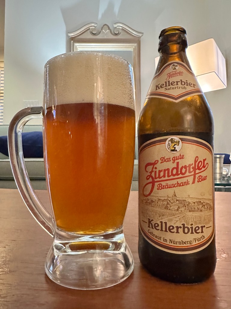 Brauerei Zirndorfer Kellerbier, another from my German exchange student, is 4.9%. Kellerbier is an old style. It is an unfiltered and unpasteurized lager that dates back to the Middle Ages. This beer style matured in deep vaults. This specific Kellerbier is brewed in Zirndorf, Germany. This beer pours a cloudy orange color with a two-finger off-white head. The aroma is malty, sweet, and yeasty. The flavor is sweet, malty, and yeasty. It is smooth. This has a medium-bodied feel to the mouth. This beer finishes with a creamy malt flavor. That flavor carries over to the aftertaste but fades away. This is a great beer, and I think it’s an A, and one I’d recommend. Most of the flavors of this Kellerbier come and go; nothing really stays around. That doesn’t bring the grade down too much. That’s the only negative thing about this beer. German brewers know how to brew simple beers well. This is a good example of that. This is the last beer from Germany, and I will be participating in dry January. Please stay safe, be kind to each other, and remember to enjoy responsibly! Cheers!