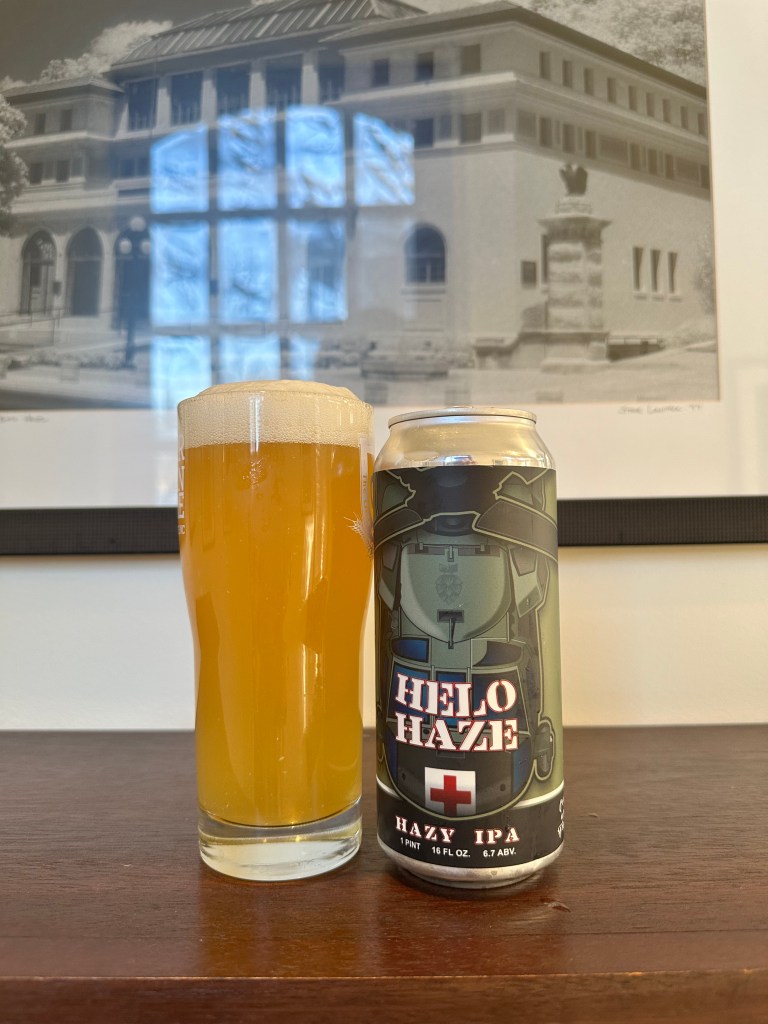 Helo Hazy, a 6.7% ABV hazy IPA from the brewery that brewed Lost Lieutenant Gold Ale; Old Amor Beer Company. This hazy IPA is made with Citra and Amarillo hops. This beer also has Verdent IPA yeast. This IPA pours bright, hazy yellow with a bright one-finger white head. The beer has bitter, hoppy, piney, and citrus aromas. The flavor is bitter, citrusy, crisp, smooth, and piney. This hazy IPA has a somewhat medium-bodied mouthfeel. Then this beer finishes with a crisp, piney, and bitter flavor. This beer’s finish lingers with pine bitterness. Overall, Helo Haze is a good beer, but the crispness somehow feels like it is interrupting the rest of the beer’s flavors. That gives Armro Beer Company Helo Haze Hazy IPA a B+. This beer should be had. I would have this again. Please stay safe, be kind to each other, and remember to enjoy responsibly! Cheers!