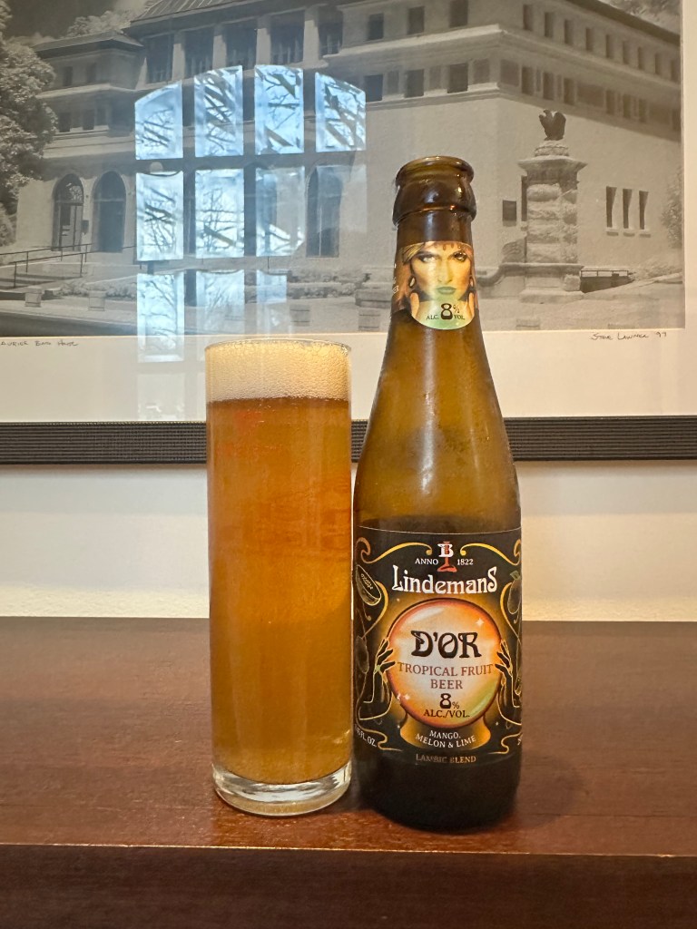I am a fan of Brouwerij Lindemans and have been looking for D’Or Topical Fruit Beer. It comes in 8.45oz bottles and is 8% ABV. This beer is brewed in Vlezenbeek, Belgium. This beer is a blend of oak-aged lambic and top-fermented Belgian strong ale. This fruit beer is mango, melon, and lime, and it pours a cloudy yellow with a one-finger white head. The aroma is tropical mango, melon, and lime. It has a Belgian aroma. The flavor is tropical with mango, melon, and lime. It has a yeasted tart flavor. This beer has a light mouthfeel. It has a slight tart and fruity finish. The aftertaste is slightly tart with a tropical note. This D’Or is good. I give this one an A+ and really recommend it. This fruity beer is refreshing and delicious. The flavor is perfectly brewed, and it doesn’t feel strong. Well done, Lindemans. Please stay safe, be kind to each other, and remember to enjoy responsibly! Cheers!