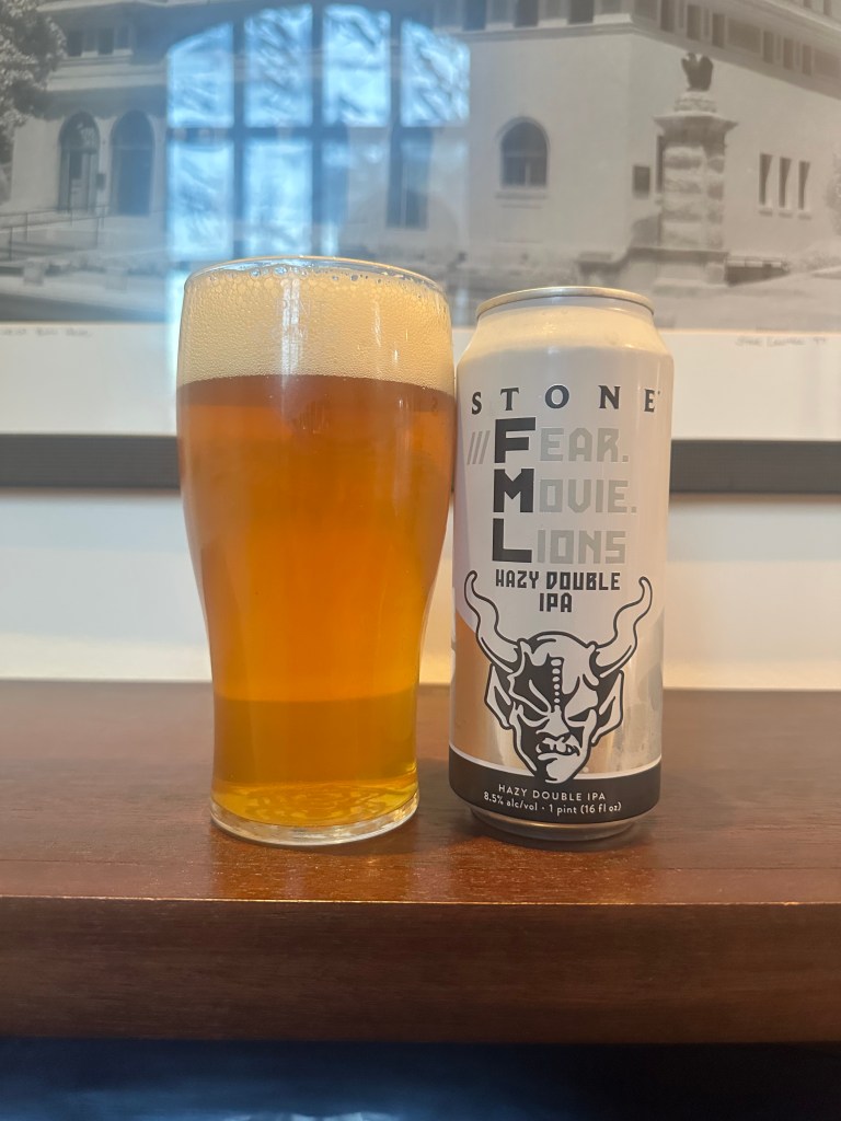 Almost five years ago, I first had Stone Brewing Fear. Movie. Lions. Hazy Double IPA. So I thought it was time for a re-review. This beer is 8.5% ABV with Loral & Mosaic hops. According to Stone, this is a cross between an East Coast IPA and a West Coast IPA. This IPA pours orange. It has a big, two-finger head. The aroma is bitter, withonions, slight orange, and grapefruit. The flavor is big oniony flavor. There is bitter grapefruit and orange. This has a fuller mouthfeel. Then this beer finishes with a bitter citrus and onion. The aftertaste is light on the onion and citrus, but the bitter hops flavor lingers. This double IPA is good, better than I remember; I gave it a B- last review. But now I think it is a B+. It is not a beer you could drink a lot of, and yes, it still comes in 16-ounce six-packs. I still recommend Stone Brewing Fear. Movie. Lions. It has a pleasant flavor that doesn’t taste like a double IPA too much. But you still would find it on the stronger side of the ABV scale. Please stay safe, be kind to each other, and remember to enjoy responsibly! Cheers!