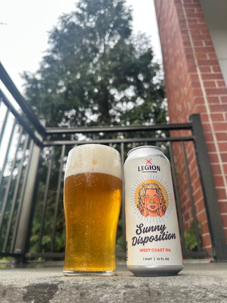 The store shelves are filled with IPAs. It seems like more than half of the beer on store shelves is an IPA of some sort. Sunny Disposition is a 7.2% ABV West Coast IPA from Legion Brewing here in Charlotte, North Carolina. Legion is one of my top breweries here. They make great-tasting beers. This IPA pours a deeper yellow with an almost two-finger white head. The aroma is slightly malty, with notes of onion, light grapefruit, and bitter notes. The flavor has notes of onion and a malty backbone. There is bitterness and grapefruit. This has a light mouthfeel. This IPA finishes with a bitter malt flavor and fruity bitterness. The aftertaste is light malt and onion flavor that fades rather quickly. The bitterness sticks around. This beer is okay, and I’ve had better versions of a West Coast IPA. Sunny Disposition is a C. It’s average, and I wouldn’t run out after this Legion Brewing beer. Please stay safe, be kind to each other, and remember to enjoy responsibly! Cheers!