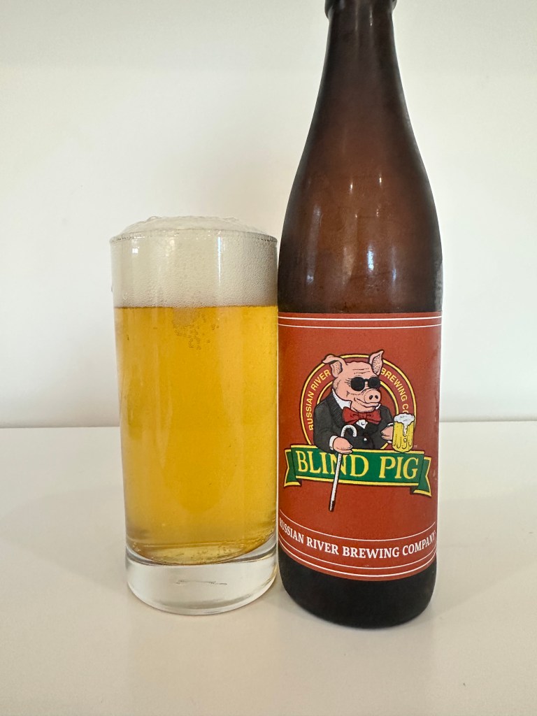 Russian River Brewing’s Blind Pig IPA is a sought-after holy grail beer. A Blind Pig is a slang name for a cheap or low-class illegal drinking establishment or speakeasy during prohibition. This IPA is 6.25% ABV, and it uses Amarillo, Citra, Cascade, Tangier, Nectaron, and CTZ hops. This year-round flagship IPA pours a golden hue with a beautiful, two-finger clean and pillowy white head. The aroma is bitter, woody, and piney. The flavor is citrusy, bitter, piney, and a bit woody. This is more like a traditional IPA with a bit of citrusy fruit flavors. This IPA finishes with a bitter pine and citrus flavor. The aftertaste is a lingering piney bitterness and a fading citrus flavor. That citrusy flavor is almost nonexistent. This IPA has a medium to barely full mouthfeel. This is a good drinking beer. You could drink two or three pints of this IPA. I recommend Russian River Brewing Blind Pig IPA. Please stay safe, be kind to each other, and remember to enjoy responsibly! Cheers!