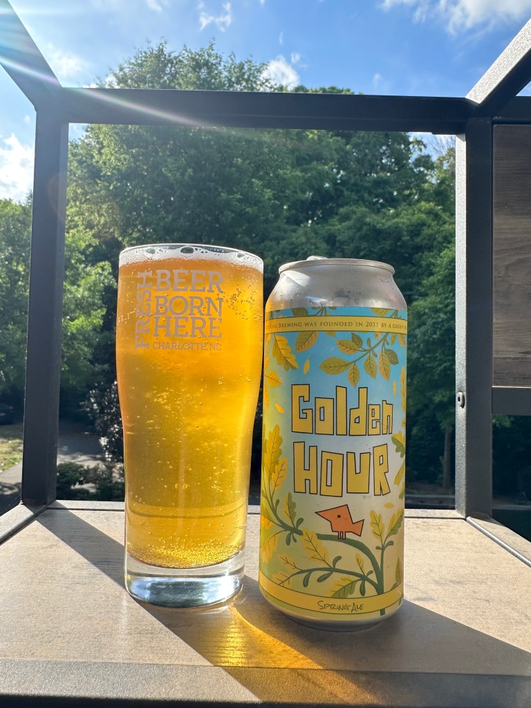 Birdong Brew Co. is one of my favorite local breweries, and this is Golden Hour, a golden or blonde ale. This beer is 5% ABV and is made with 2-Row, Pilsner, Vienna, and Chit malts. Golden Hour is also made with Cascade, Hallertau, and Mittelfruh hops. This blonde is a seasonal beer available from March through April. This beer pours a golden color with a one-finger, quickly fading dull white head. The aroma is floral, sweet (almost honey-like), and hoppy. The flavor is sweet, floral, herbal, and hoppy. This beer has a light bread flavor. This has a light mouthfeel. The flavor is not great. They are clashing and make this beer not taste good. This beer finishes with a semi-sweetness and some floral herbs. The aftertaste lingers for a second with a bad, sweet, herbal taste. I didn’t like Birdsong Golden Hour too much. I give it a D, and I would not recommend it. I did, however, finish it, but I didn’t want another one. Near the end of this pint, I was contemplating pouring this last bit away. I usually find Birdsong beers to be good, but this one was not. The floral, hoppy, and sweet flavors didn’t meld into something good. Each flavor was not so good. Please stay safe, be kind to each other, and remember to enjoy responsibly!