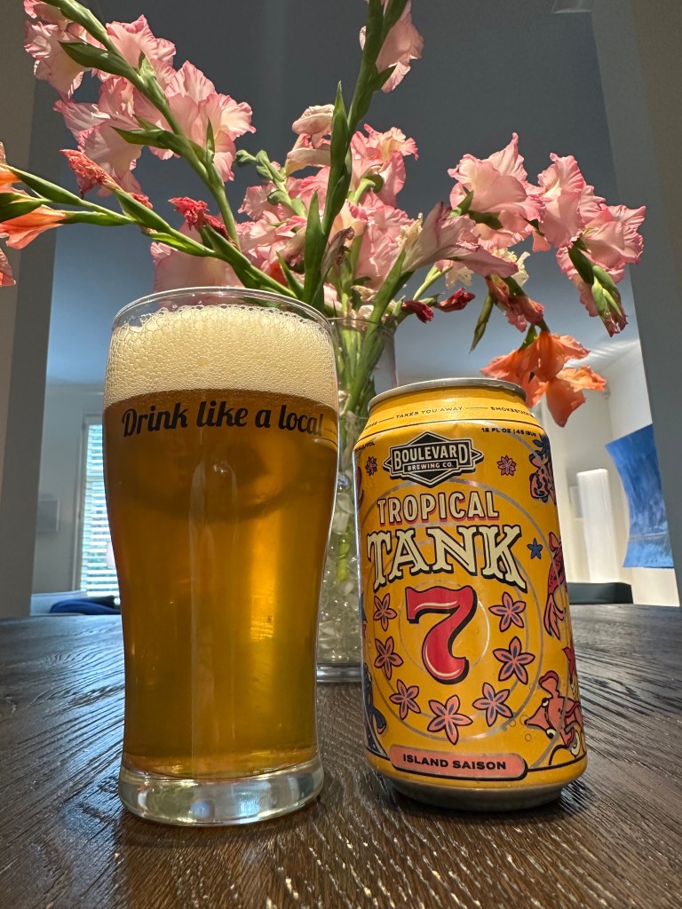 Tropical Tank 7 is a new beer from Boulevard Brewing Co. in Kansas City, Missouri (www.boulevard.com). This is an 8.5% ABV Island Saison that I purchased from Southern Spirits (www.southernspirits.com). This beer was released in May of this year. This beer pours yellow with a one-finger white head. The aroma is sweet, candied tropical fruit and bubble gum. The flavor is sweet, tropical fruit, bubble gum, and light perfume. The scent smells slightly better than it tastes. You get a faint/light juicy fruit finish that fades fast. The aftertaste is tropical fruit bubble gum. It’s not so great. The sweetness is too much, and you don’t get any Belgian yeast esters. I did finish this beer. I mean, this wasn’t disgusting. I give Tropical Tank 7 a low-grade D. I don’t think this is something that you need to rush out and have. Regular Tank 7 is a better choice in this situation. Please stay safe, be kind to each other, and remember to enjoy responsibly! Cheers!